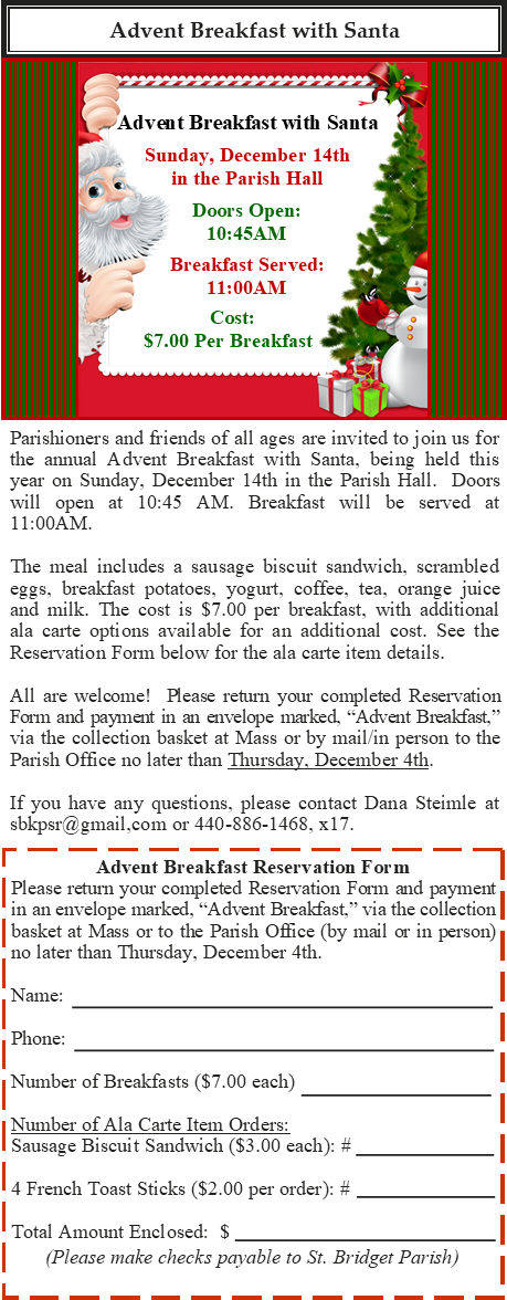 The Good Samaritan Ministry will be sponsoring its annual Thanksgiving Day food collection for the St. Vincent de Paul Southwest Ozanam Food Pantry at the 9:00 AM Mass on Thanksgiving Day, Thursday, November 27th.